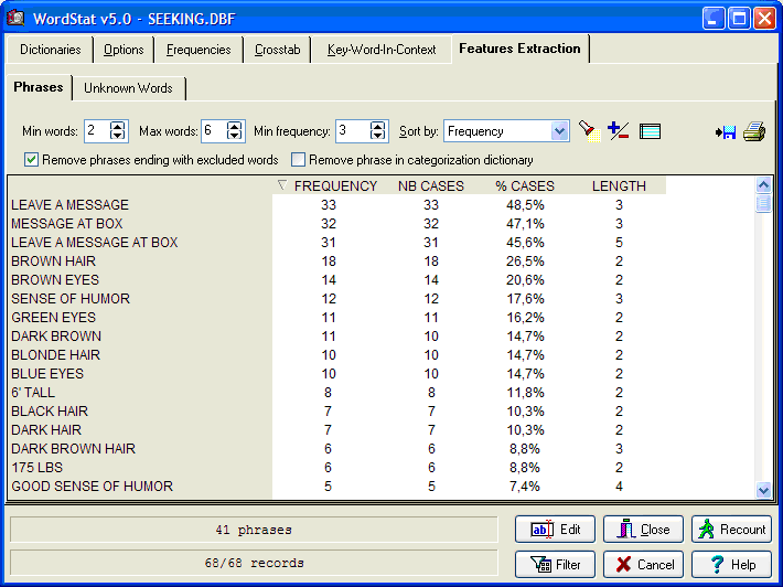 - All changes made to the categorization dictionary or exclusion list may be canceled during a session.